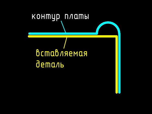 Напомним, что для фрезеровки контура печатных плат, а также окон и вырезов используются фрезы 2.5 и 2.0. Непосредственно ими прямые углы в вырезах печатных плат сделать невозможно. Но существуют способы как сделать прямой угол, например, чтобы в окно входил сердечник трансформатора, не цепляясь за скругления углов. Для этого дизайнер (разработчик) платы может использовать один из предложенных способов.