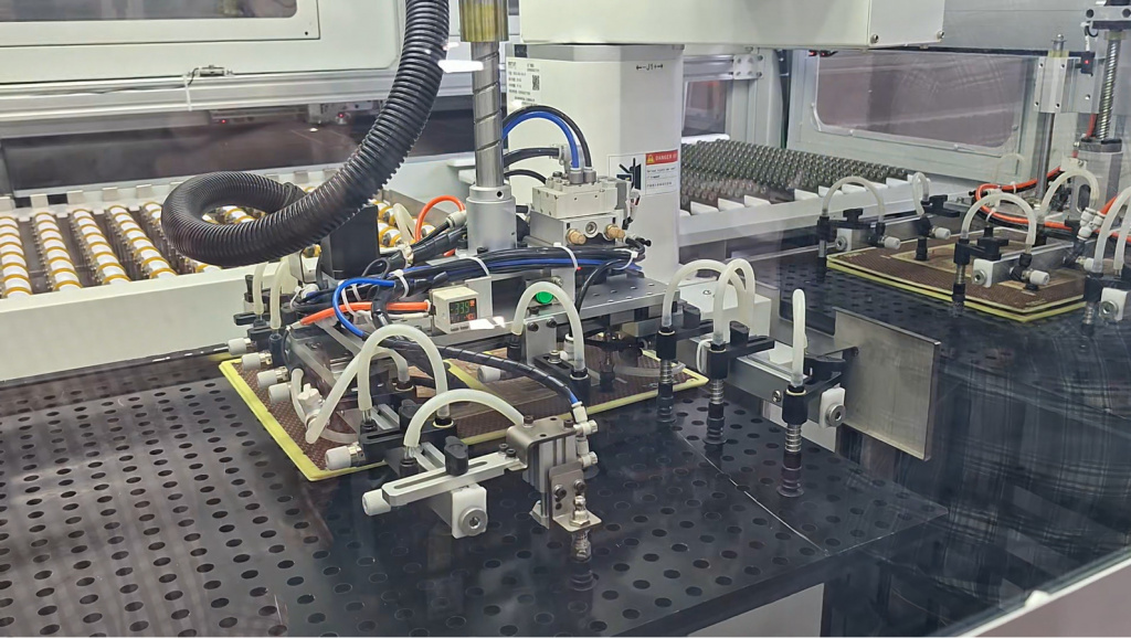 Внутренние слои изготавливаются до прессования. Каждый слой проходит полный цикл: фоторезист, экспонирование, травление, Автоматическая Оптическая Инстпекция (AOI), оксидирование. И только после этого слои собираются в пакет с препрегом и прессуются.